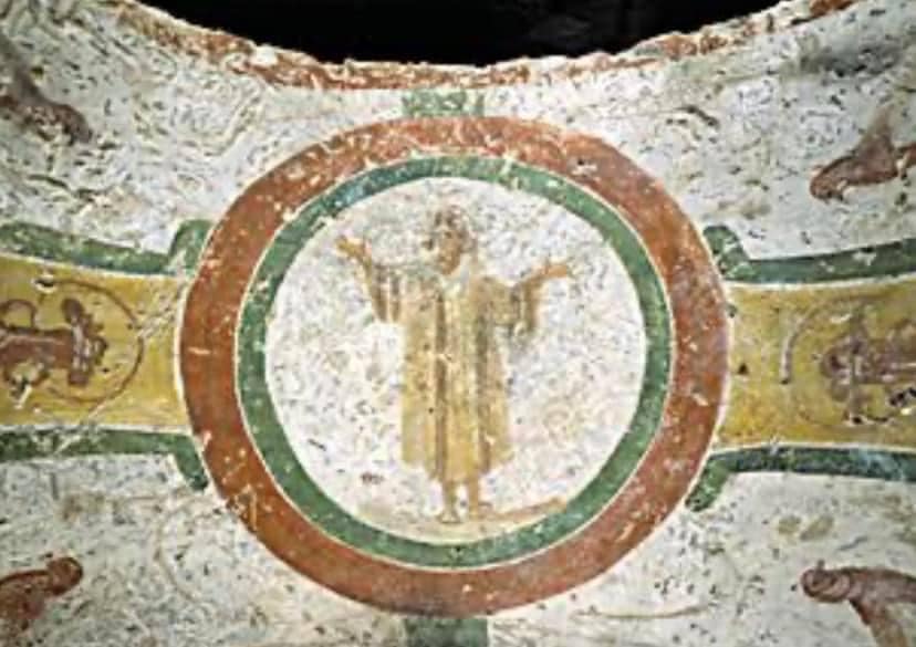 No início do século III, Tertuliano, o primeiro grande teólogo do Ocidente (que, infelizmente, se distanciou da comunhão católica na última fase de sua vida), dizia claramente como os cristãos deviam rezar a oração dominical: com as mãos elevadas, antes, estendidas, imitando a Paixão do Senhor (De oratione, 14). Advertia, porém, quanto ao perigo de não se respeitar uma certa moderação na altura das mesmas mãos: braços demasiadamente erguidos poderiam ser um sinal equivalente ao olhar altaneiro, indício de falta de humildade. Pouco tempo depois, também São Cipriano, Bispo de Cartago, fazia a mesma admoestação (De dominica oratione, 6).