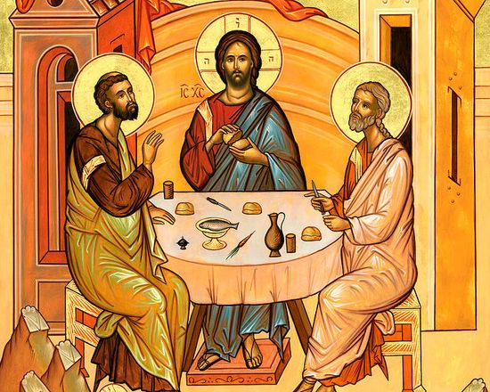 Nesse momento, o pedido carregado de insegurança revela o medo dos discípulos de ficarem sozinhos, após a morte de Jesus, tendo em vista, que sua ressurreição ainda não fazia um sentido para eles. Portanto, Cristo ouviu o pedido dos dois viandantes - sentou-se com eles à mesa, tomou o pão, abençoou e o partiu. Logo, nesse instante, eles reconheceram Jesus por esse gesto da partilha. Nessa conjuntura, hoje, Jesus é o alimento que se dá por nós na Eucaristia e, ademais, nos instrui a viver na fraternidade com todos os irmãos sem deixar ninguém fora da mesa dessa partilha.