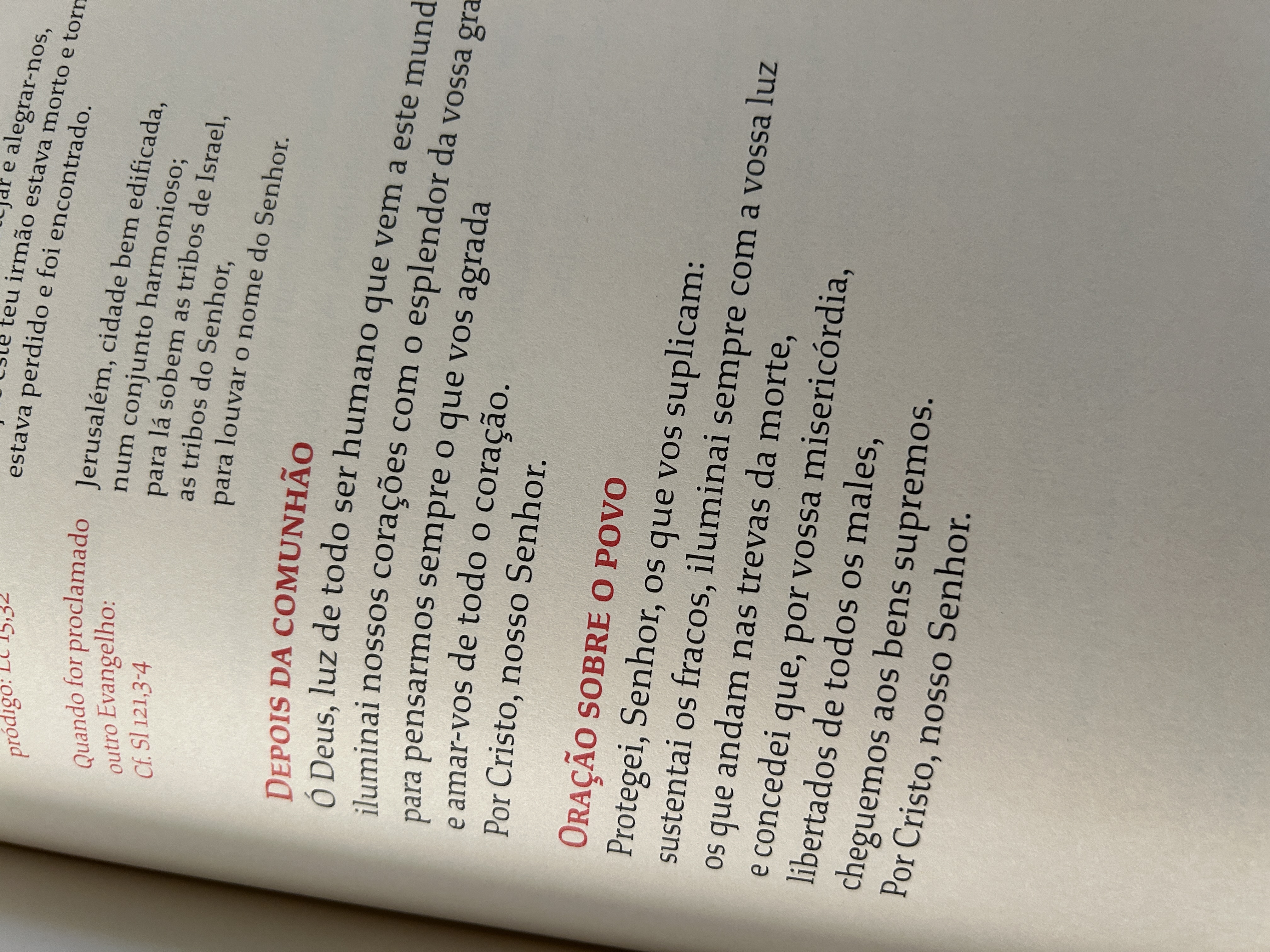 [3] Missal Romano reformado por decreto do Concílio Ecumênico Vaticano II e promulgado por autoridade de S. S. o Papa Paulo VI e revisto por S. S. o Papa João Paulo II. Tradução portuguesa da terceira edição típica realizada e publicada pela Conferência Nacional dos Bispos do Brasil com acréscimos aprovados pela Sé Apostólica. Brasília: CNBB 2023, 197.